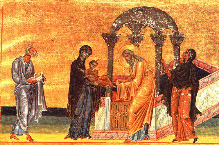 Ten, ktorý figuruje v prorokovom videní ako Starec dní, sa teraz zjavuje ako „nové Dieťa“. Takto ho ospevuje liturgia Vianoc a dvaja starci v chráme. Božia Matka Mária je v liturgických textoch vykresľovaná neustále ako tá, ktorá drží, ktorá nesie Krista. Tri tropáre v druhej časti byzantskej večierne sú venované postave Márie. Prvý z nich sa dostal do rímskej bohoslužby dnešného sviatku ako antifóna „Adorna thalamum tuum Sion“. V tomto texte sa dávajú Božej Matke rozličné kristologické tituly – nebeská brána, trón, oblak Svetla: „Vyzdob svoje svadobné lôžko, Sion, a prijmi Kráľa Krista; objím Máriu, nebeskú bránu, pretože ona sa stala trónom cherubínov, ona je bránou Kráľa slávy; Panna je oblakom Svetla, pretože nosí v sebe Syna v tele, Syna, ktorý bol skôr než ranná zora…“