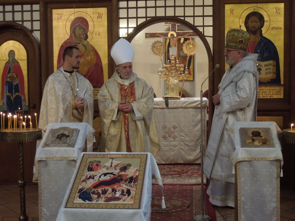Jasličkovú pobožnosť svojou účasťou poctil aj apoštolský nuncius v SR Mons. Giacomo Guido Ottonello, ktorý následne s vladykom Petrom slávil archijerejskú liturgiu, počas ktorej nuncius predniesol homíliu v slovenčine.