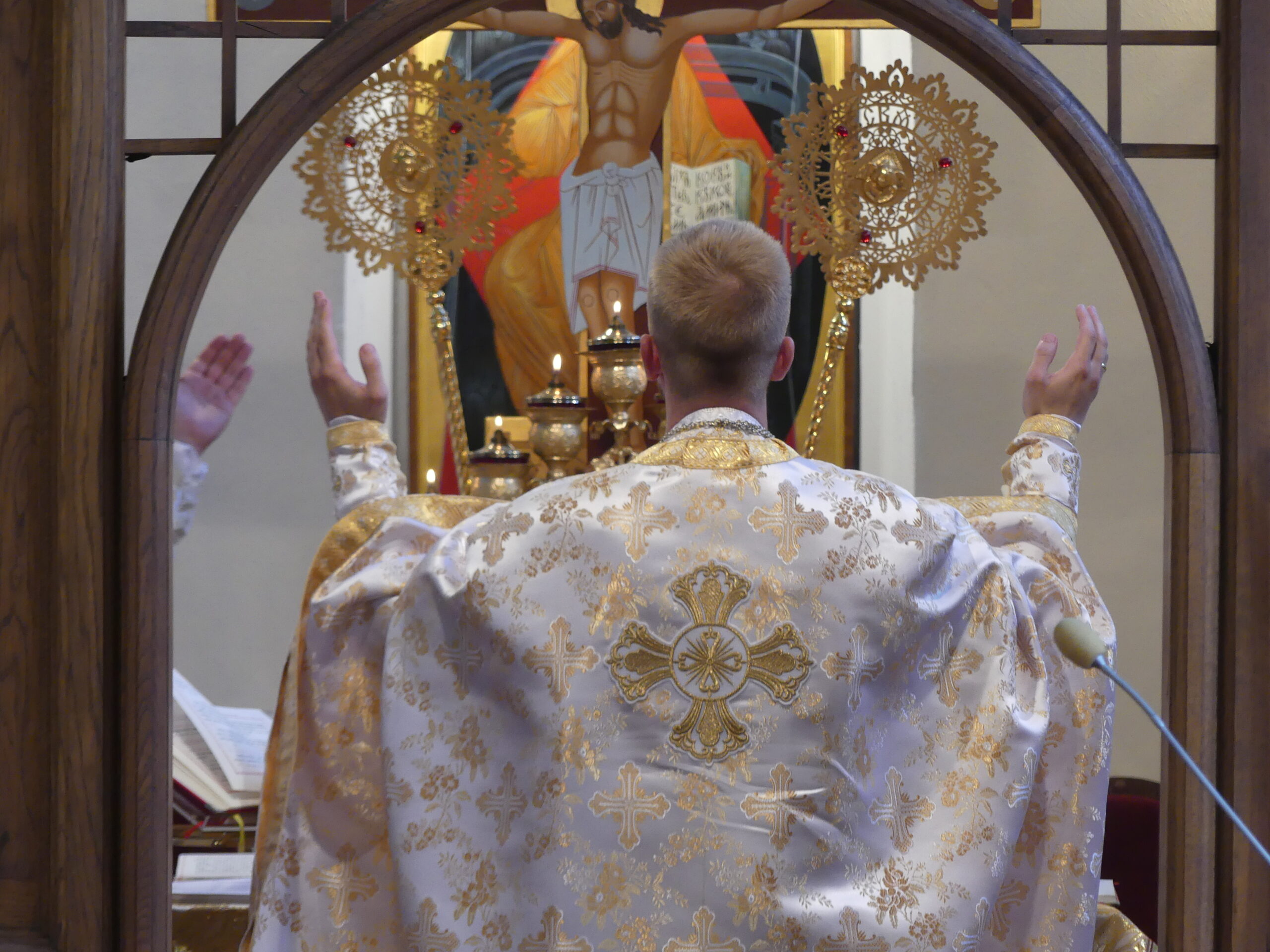Primičná slávnosť sa začala sprievodom do katedrály, v ktorej nasledovalo obliekanie novokňaza. Ten sa pri jednotlivých častiach kňazského odevu modlí predpísané modlitby, ktoré veriacim v komentári vysvetlil miestny farár protopresbyter o. Rastislav Čižik. Pred liturgiou dostal novokňaz požehnanie od svojich rodičov a v duchu kajúcnosti poprosil všetkých o odpustenie, ak sa voči niekomu previnil.