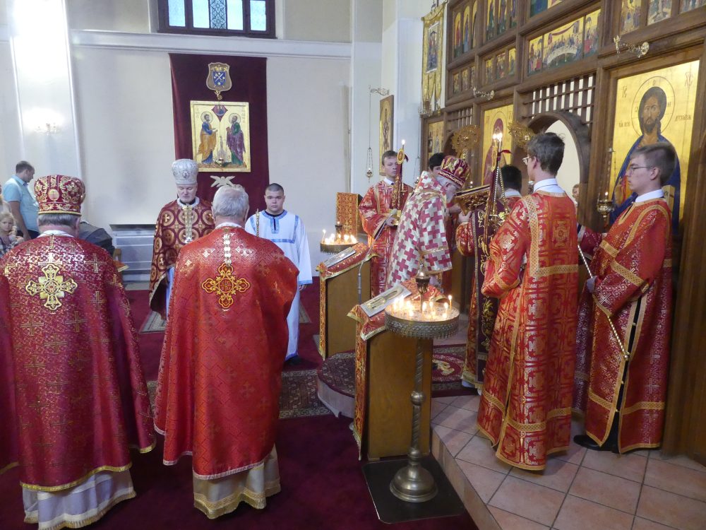 Vzhľadom na veľký počet farníkov, ktorí navštevujú bohoslužby v katedrále boli slávené dve odpustové sväté liturgie: prvá v cirkevnoslovanskom jazyku so začiatkom o 9.00 hod. ktorej hlavným slúžiteľom bol eparchiálny biskup Peter Rusnák, a ktorú spevom sprevádzal Katedrálny zbor Kyrillomethodeon pod vedením Ladislava Sabolčáka; druhá slávnostná liturgia o 10.30 hod. sa slávila v slovenskom jazyku a jej hlavným slúžiteľom bol pomocný biskup Milan Lach a spevom ju sprevádzal Katedrálny zbor Chryzostomos pod vedením Martina Škovieru. Pri oboch liturgiách diakonizovali archidiakon Michal Vadrna. Po oboch liturgiách mohli prítomní farníci prežívať sviatočnú atmosféru aj pri agapé na nádvorí a v sále eparchiálneho úradu.