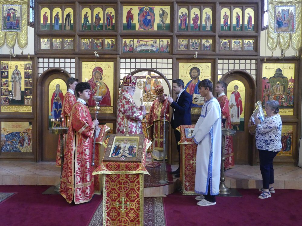 Na záver odpustovej slávnosti zablahoželali zástupcovi farskej rady vladykovi k neho nedávnym narodeninám. Zhromaždenie zaspievalo pápežskú hymnu a Mnoholitstvije a ako zvyčajne sa konalo myrovanie. Farské spoločenstvo malo možnosť prežiť slávnostné chvíle aj pri agapé v aule Eparchiálneho úradu.