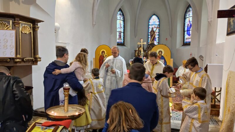 V nedeľu 23. októbra oslávila trnavská gréckokatolícka farnosť sviatok svojho patróna sv. Lukáša, a to slávnostnou svätou liturgiou, ktorú slávil o. Vladimír Skyba, bratislavský protosynkel (generálny vikár). Slávnostnú svätú liturgiu nám okrem kantora Mira spríjemnil aj detský zbor našej farnosti pod vedením Zuzky Sabolovej a za sprievodu Zdenka Popika. Po tradičnej procesii okolo kostola na záver slávnosti sa rodiny našej farnosti stretli na slávnostnom agapé na fare. Ďakujeme všetkým, ktorí pomáhali s prípravou tejto slávnosti aj všetkým rodinám za ich účasť.
