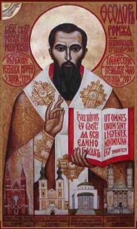 Nasledujúc nábožnú cestu apoštolov, biskup a mučeník Teodor, ako dobrý pastier, čo bráni Kristovo stádo, položil si blažený, svoju mladú dušu. Zabili ťa zúrivý bezbožníci a ty si vstúpil do večnej radosti ozdobený ranami Krista Kráľa. Z rúk Božieho Baránka si prijal veniec slávy. Pros ho, mnohotrpiaci, aby spasil naše duše.