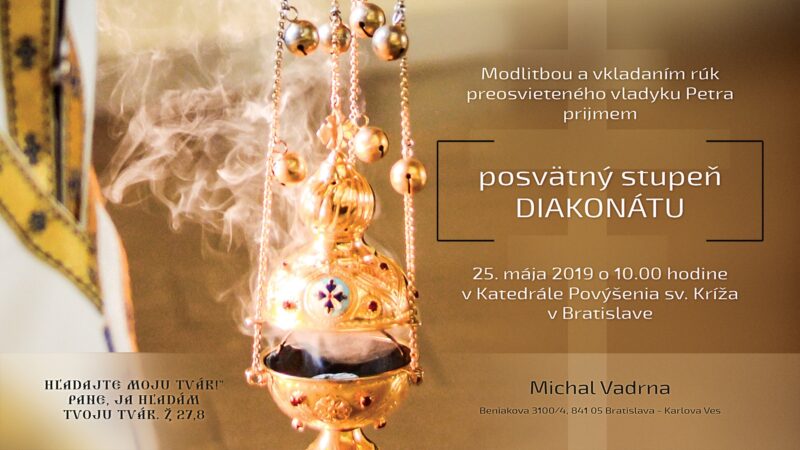Bratislavská eparchia pozýva na archijerejskú liturgiu, pri ktorej subdiakon Michal Vadrna prijme z rúk vladyku Petra sviatosť posvätného stavu v prvom stupni – diakonát.