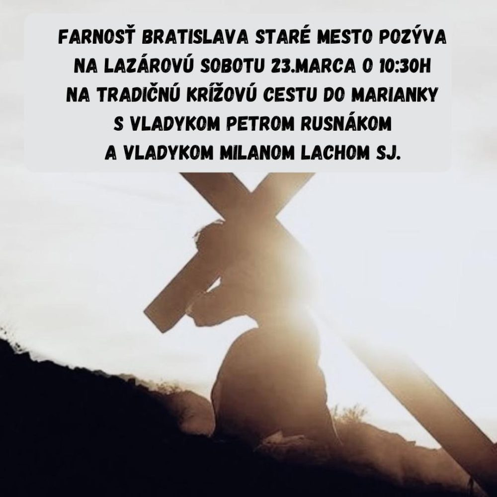 Bratislavská eparchia, Farnosť Bratislava Staré Mesto pozýva na tradičnú Krížovú cestu s do Marianky, ktorú bude viesť vladyka Milan Lach SJ. Stretnutie sa koná na Lazarovu sobotu, 23. marca 2024 o 10.30 hod.
