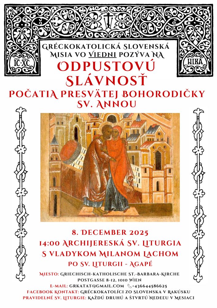 Gréckokatolícka slovenská misia vo Viedni pozýva na odpustovú slávnosť na sviatok Počatia presv. Bohorodičky sv. Annou.