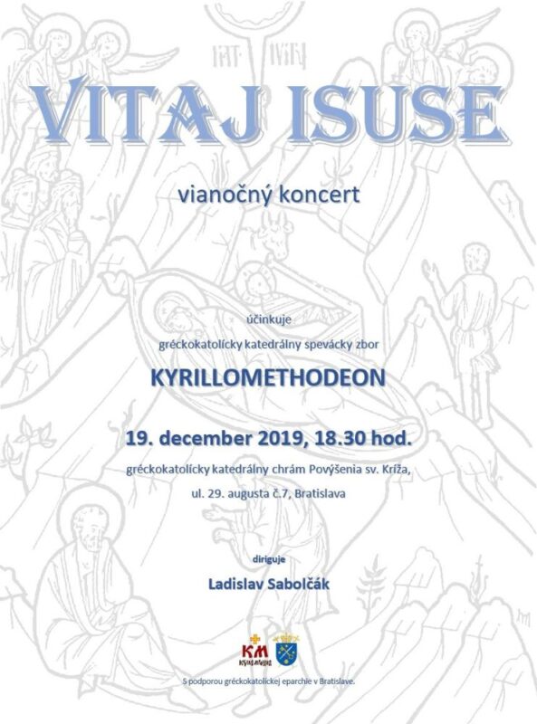 Katedrálny spevácky zbor Kyrillomethodeon spolu s dirigentom Ladislavom Sabolčákom, pozýva všetkých veriacich, priaznivcov zborového spevu a spevov východného byzantského obradu, na tradičný vianočný koncert s názvom „Vitaj Isusue“,