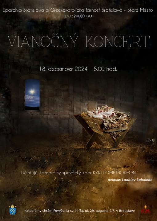 Gréckokatolícka eparchia Bratislava a Farnosť Bratislava-Staré Mesto srdečne pozývajú na Vianočný koncert Zboru Kyrillomethodeon.