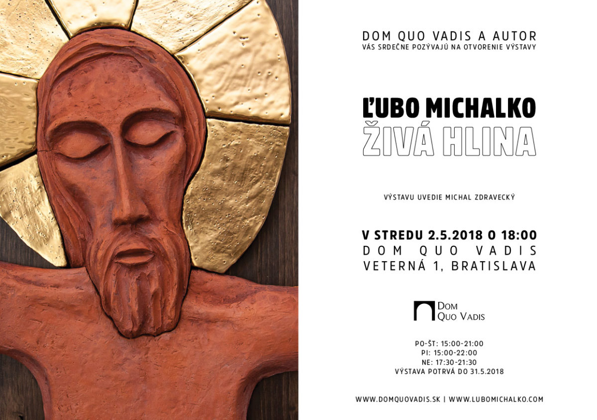 Výstava výtvarníka Ľuba Michalka „Živá hlina“ predstavuje autorovu najnovšiu tvorbu keramických obrazov, v ktorej aj naďalej rozvíja tému vzťahu medzi Bohom a človekom. Výstava bude prebiehať celý mesiac máj v Dome Quo vadis v Bratislave.
