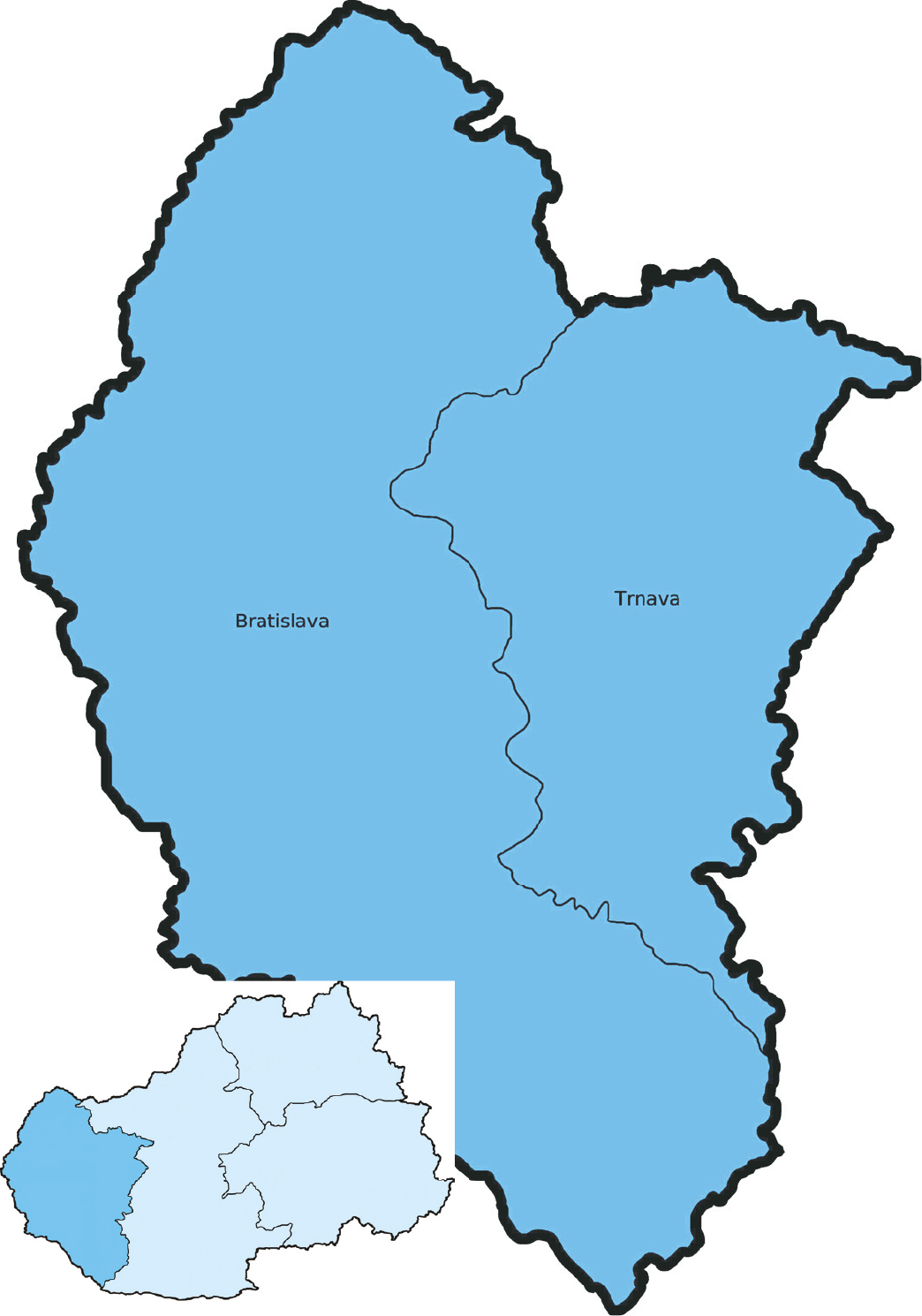 Jurisdikčné územie: okres Bratislava I, II, III, IV; okresy Dunajská Streda 316, Malacky125, Pezinok 160, Senec 177, Senica 106, Skalica 64
