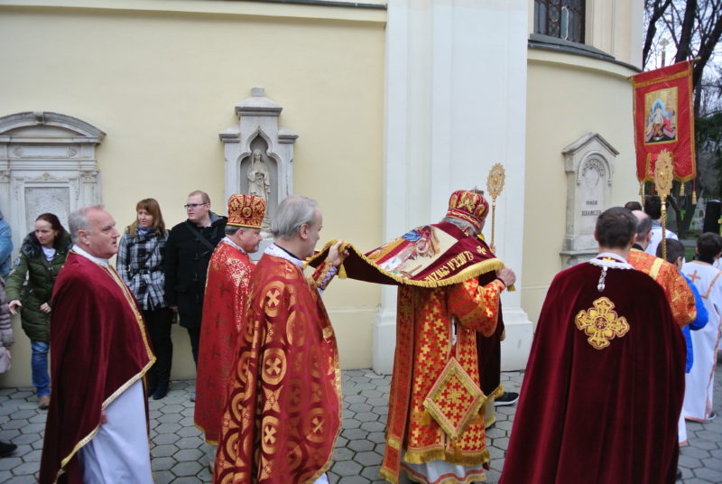 V pondelok Svetlého týždňa vladyka Peter slúžil v katedrále archijerejskú liturgiu o 9.00 hod., po ktorej nasledovalo myrovanie a tradičný sprievod okolo chrámu s čítaním štyroch voskreskných evanjelií. Ako vladyka v homílii zdôraznil, dnešný deň je liturgicky venovaný apoštolom a ohlasovaniu dobrej zvesti. Vychádzajúc z evanjelia, poukázal na postavu sv. Jána Krstiteľa, ktorý charakterizuje sám seba ako „hlas volajúceho na púšti“.