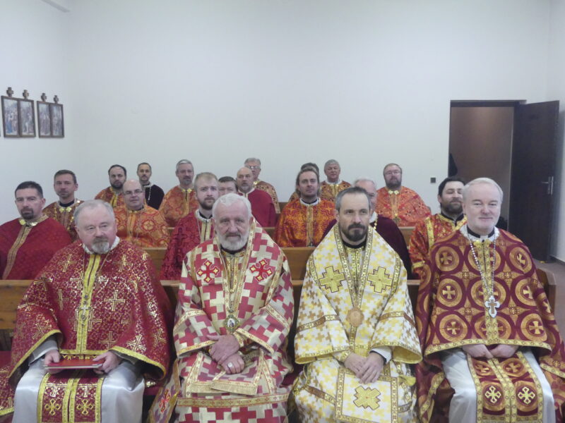 Po modlitbe večierne kňazi zablahoželali vladykovi Milanovi Lachovi k jeho nedávnemu jubileu a venovali mu biskupskú mitru zelenej farby. V neformálnych rozhovoroch sa kňazi mali možnosť zdieľať so svojimi ťažkosťami i radosťami.