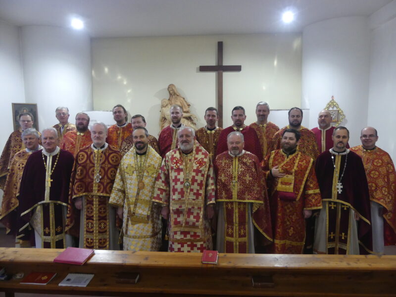 Po modlitbe večierne kňazi zablahoželali vladykovi Milanovi Lachovi k jeho nedávnemu jubileu a venovali mu biskupskú mitru zelenej farby. V neformálnych rozhovoroch sa kňazi mali možnosť zdieľať so svojimi ťažkosťami i radosťami.