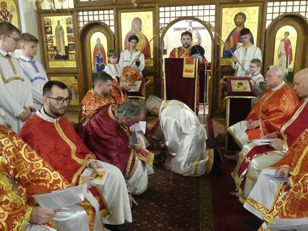 Na Veľký štvrtok poobede, za hojnej účasti Božieho ľudu, slávil vladyka Peter Rusnák spolu s vladykom Milanom Lachom a s viacerými kňazmi i archidiakonom v Katedrálnom chráme Povýšenia vznešeného a životodarného Kríža v Bratislave Božskú liturgiu sv. Bazila Veľkého s večierňou. Počas liturgie vladyka Peter posvätil olej – myro, ktorý sa používa pri vysluhovaní sviatostí. Na záver slávnosti sa konal obrad umývania nôh, počas ktorého vladykovia umyli nohy deviatim prítomným kňazom.