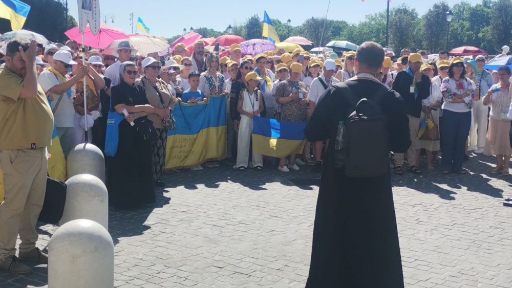 Jeho slová opakuje o. Vasil Marčuk, ktorý vedie stovku ukrajinských gréckokatolíkov, ktorí prišli z Bergama, „aby sa s všetkými Ukrajincami podelili o dar odpustenia a spoločnej modlitby. Dojíma nás pohľad na tento dav, toľko vlajok, a dúfame, že Pán požehná našu vlasť a náš ľud“.